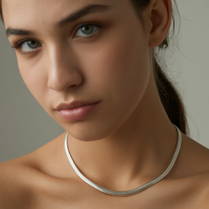 The necklace that feels like liquid light on your skin. The Sleek Simplicity Snake Chain Necklace is crafted in 925 sterling silver, perfectly smooth and polished to catch the light with every movement.