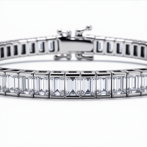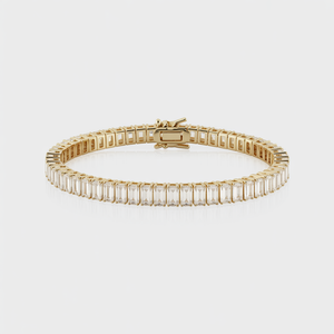 The Baguette Cut Tennis Bracelet isn’t here to whisper — it’s here to shine. Each elongated, step-cut stone is perfectly aligned to create a ribbon of light that’s clean, modern, and impossible to ignore.